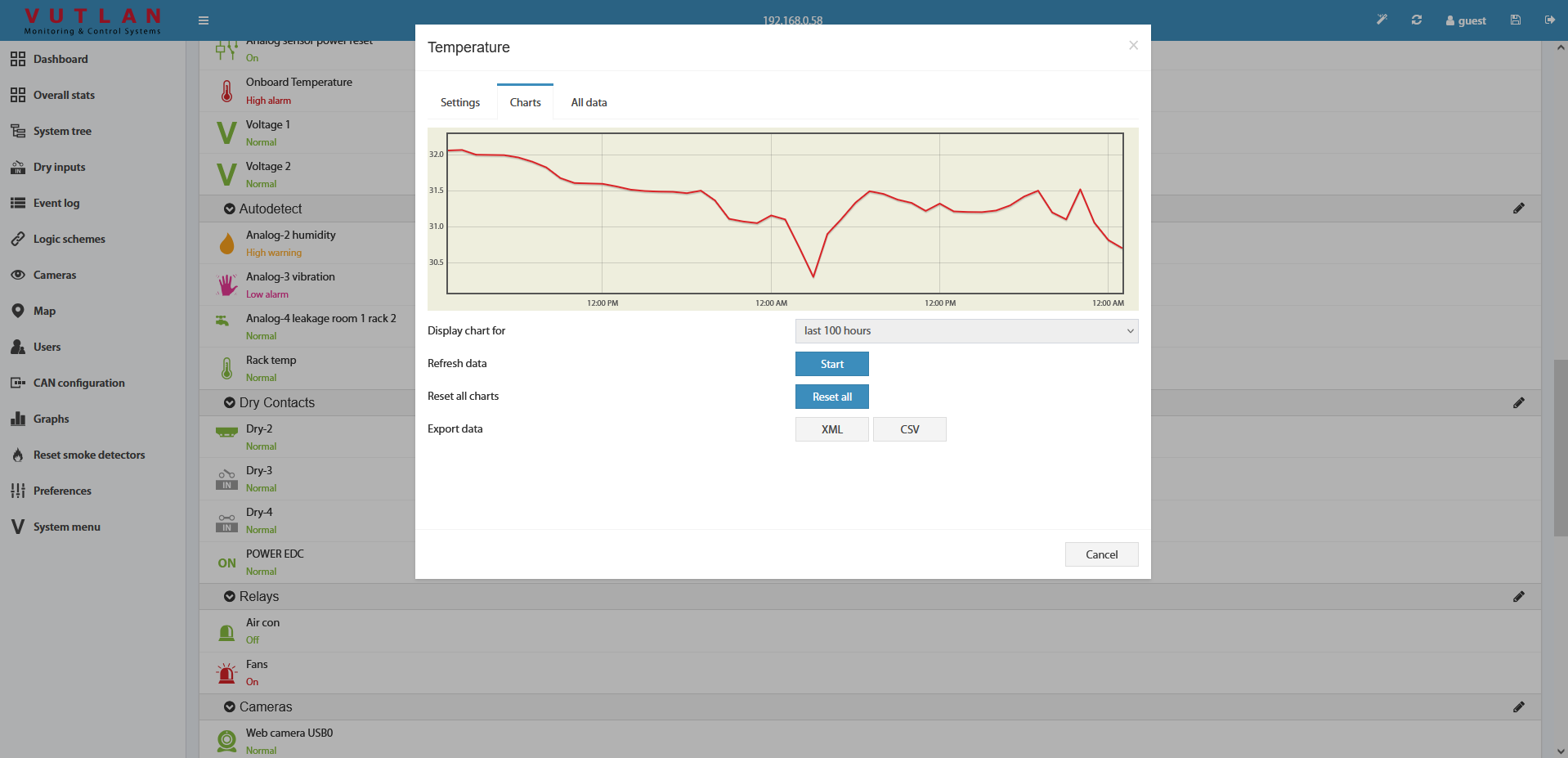 Вимірювання періодично зберігаються у внутрішній пам’яті або на зовнішніх носіях і відображаються у вигляді графіків. Кожен графік показує дані за останні 100: секунд, хвилин, годин, днів. Веб-інтерфейс забезпечує легкий доступ до цих журналів для кожного окремого датчика.